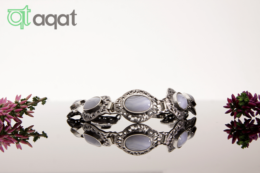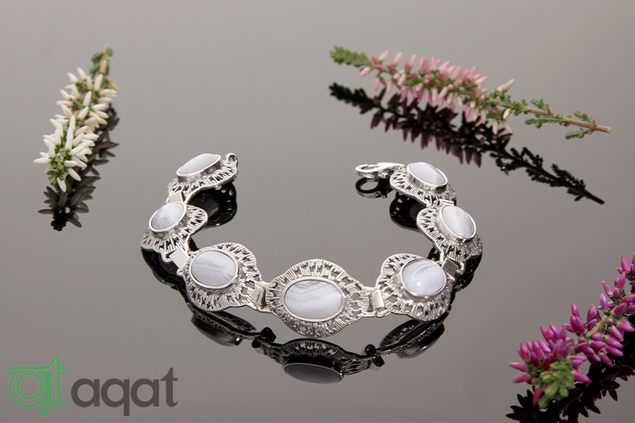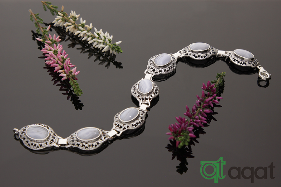 Bransoletka srebrna próby 925, oksydowana z Agatem Blue Lace o wymiarach 12/8.