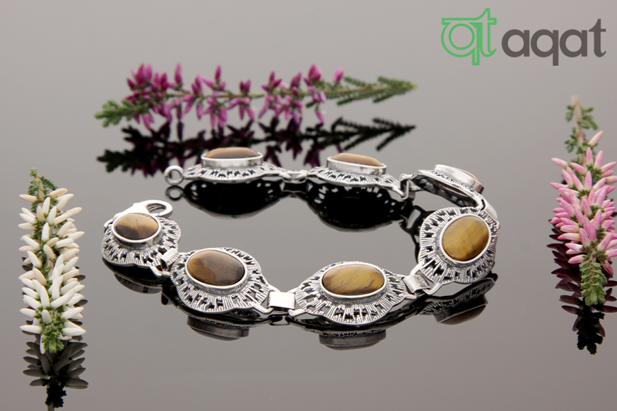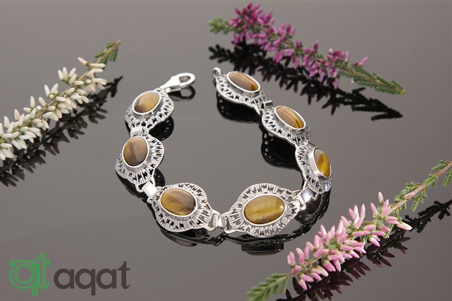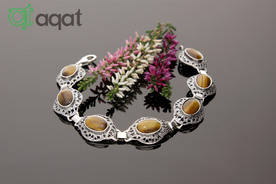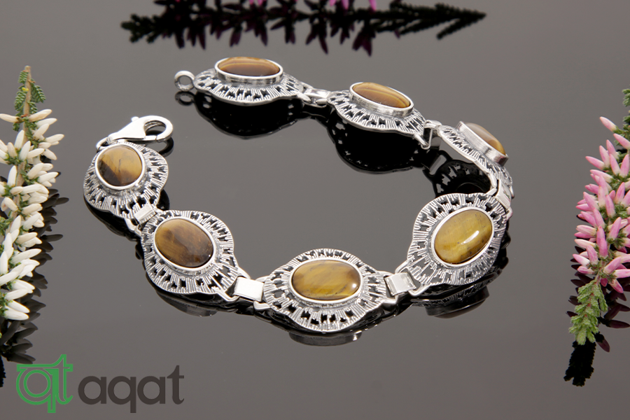 Bransoletka srebrna próby 925, oksydowana z Tygrysim Okiem o wymiarach 12/8.
