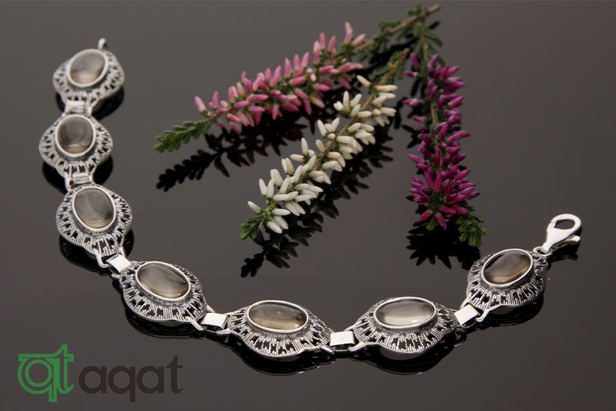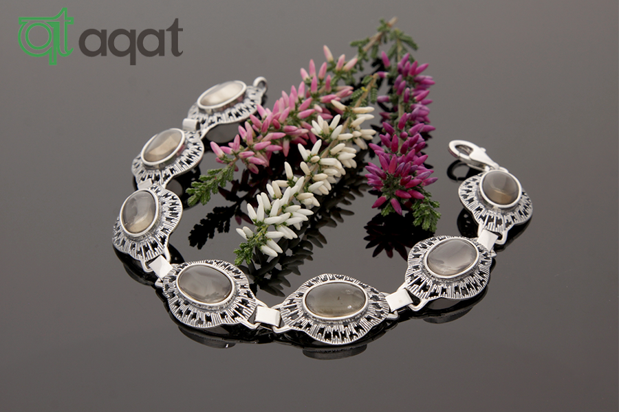 Bransoletka srebrna próby 925, oksydowana z Kwarcem Dymnym o wymiarach 12/8.
