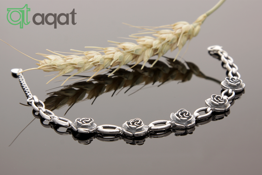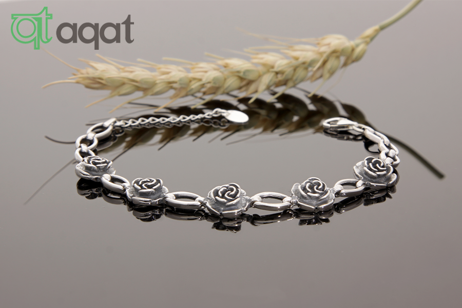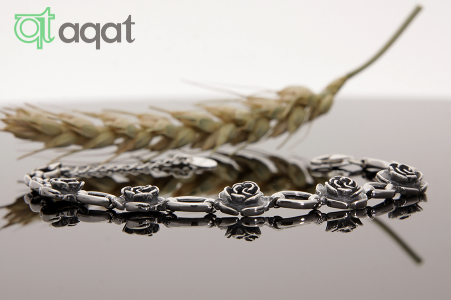 Bransoleta srebrna, oksydowana, kwiaty róży.