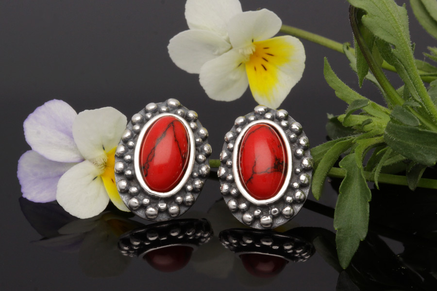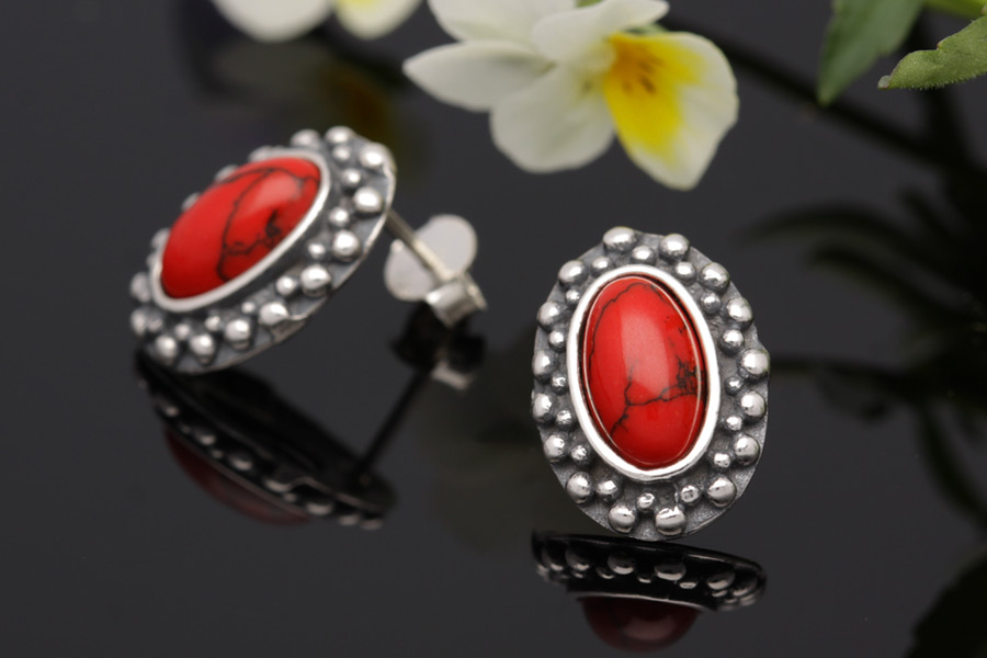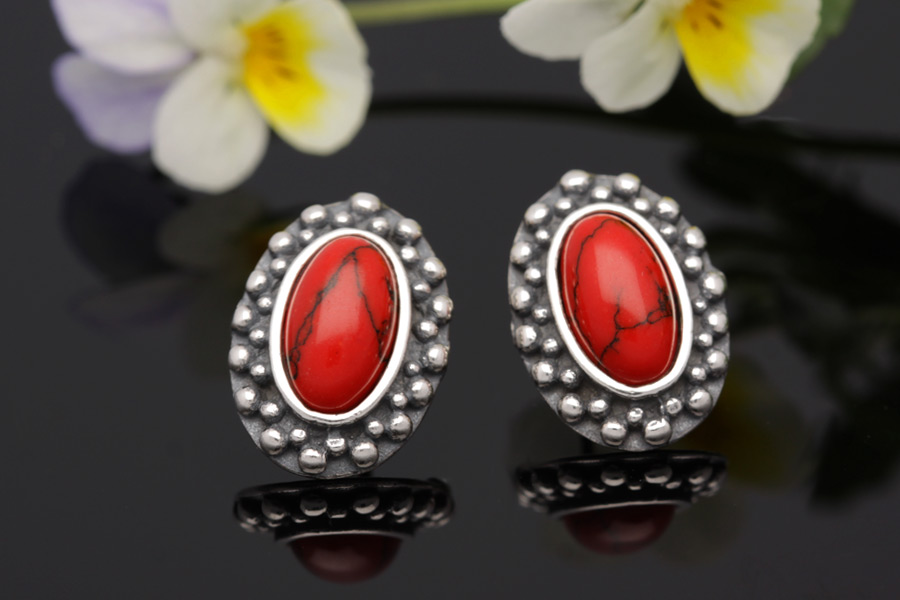 Kolczyki srebrne próby 925 z Koralem, oksydowane.