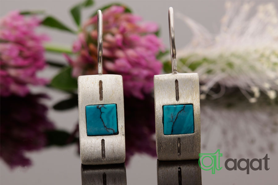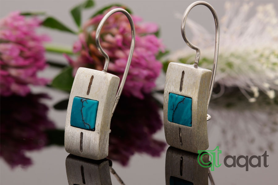 Kolczyki srebrne próby 925 z Turkusem, oksydowane.