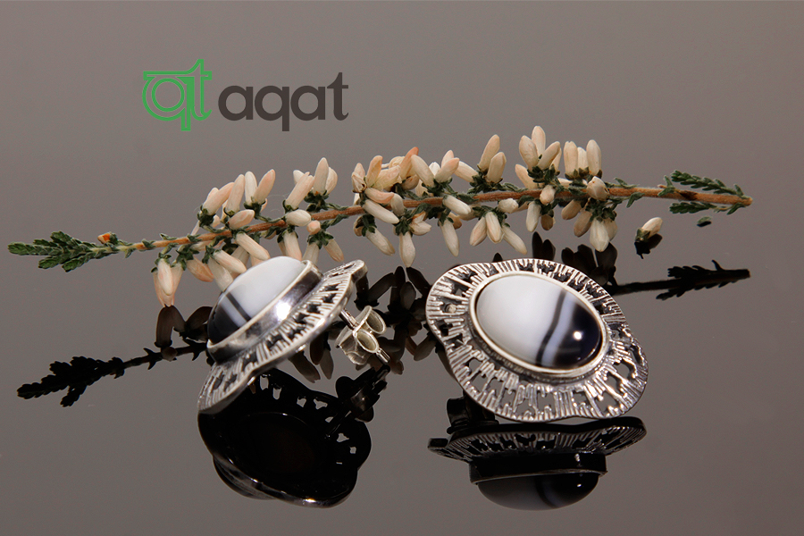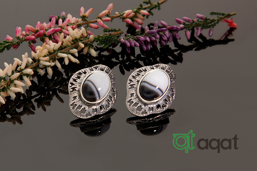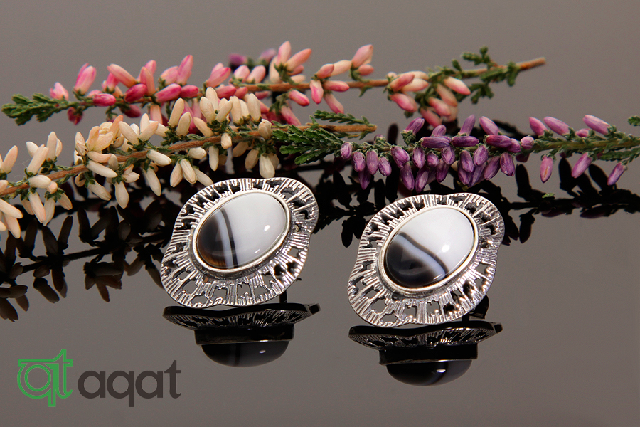 Kolczyki srebrne próby 925 z Onyksem, oksydowane.