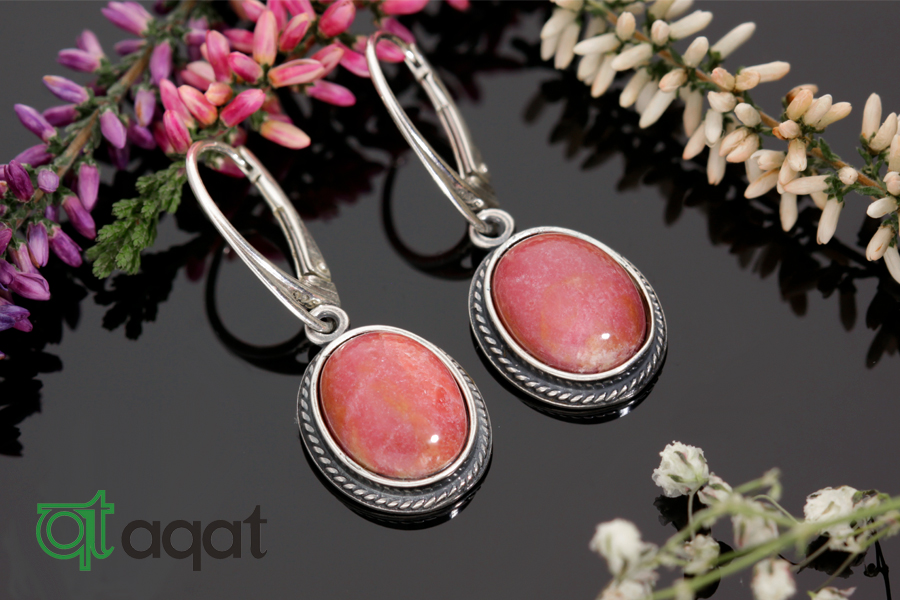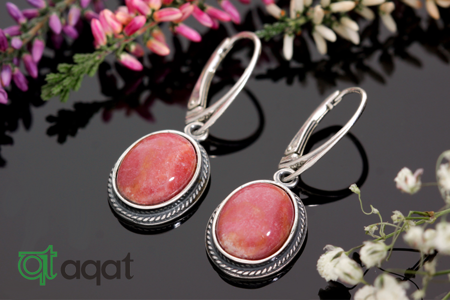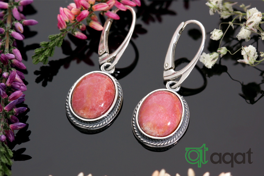Kolczyki srebrne próby 925 z Rodonitem, oksydowane.