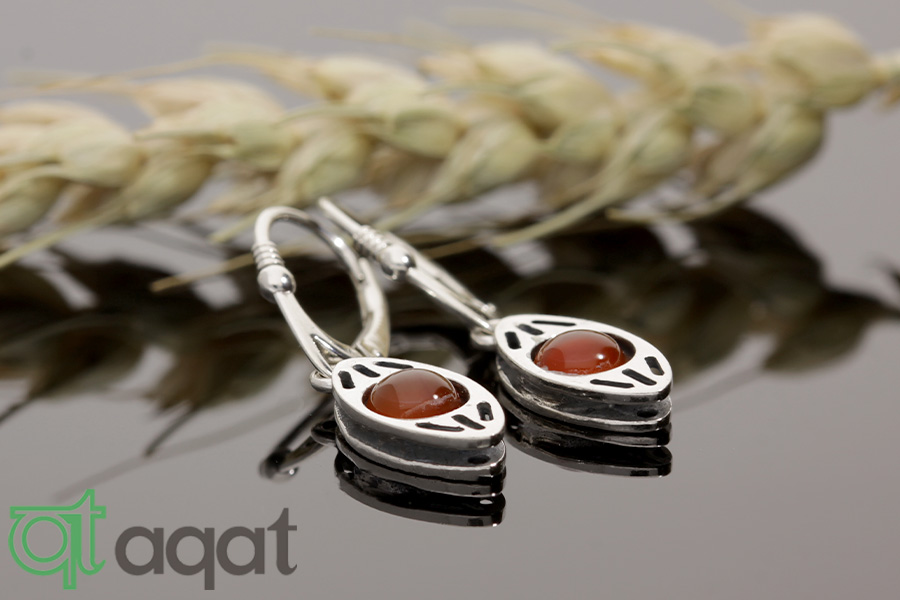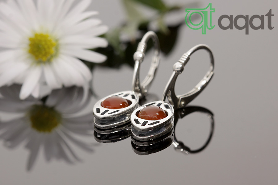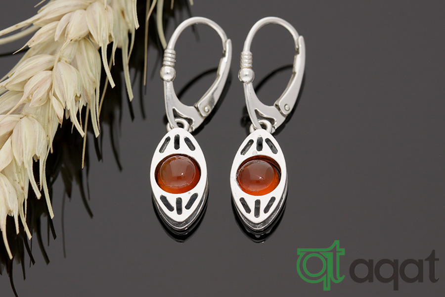 Kolczyki srebrne próby 925 z Karneolem, oksydowane.