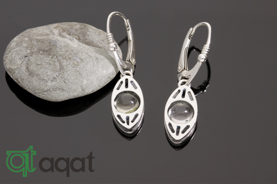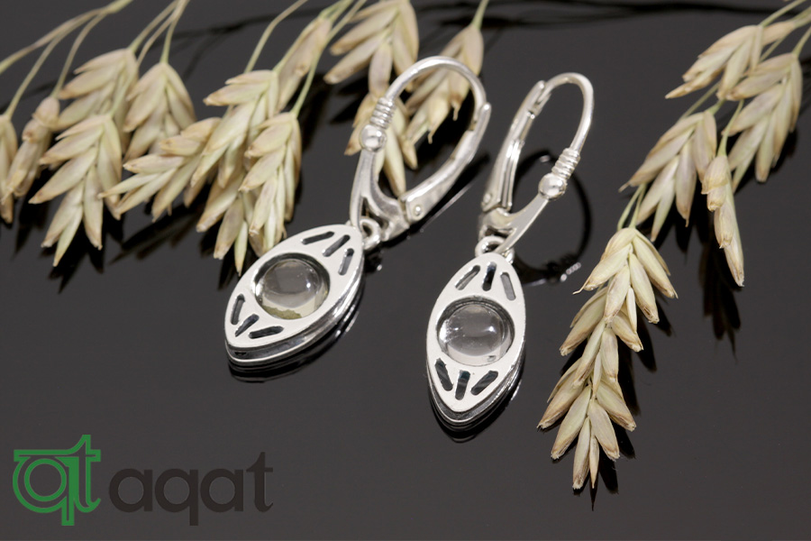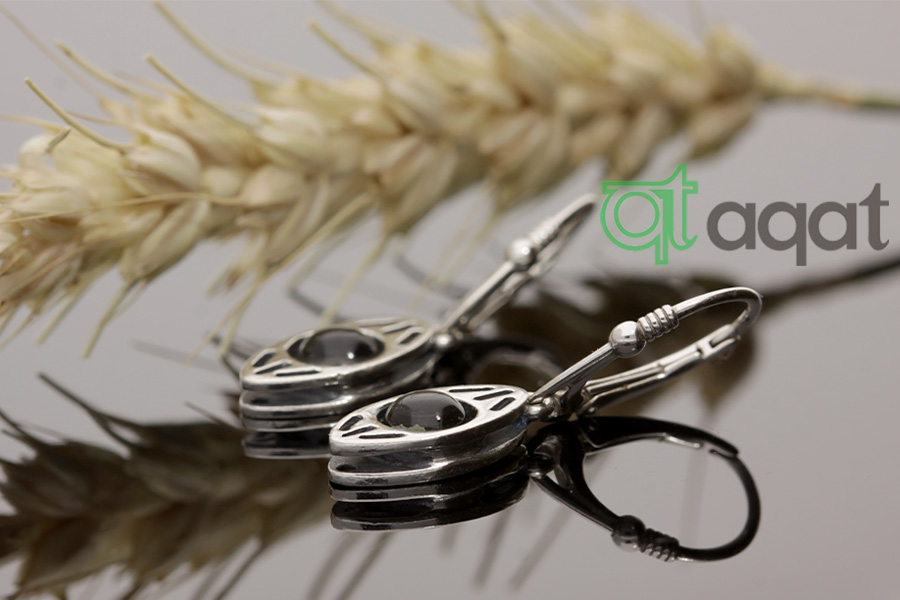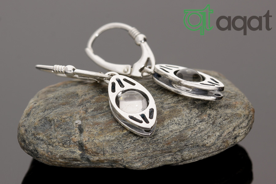 Kolczyki srebrne próby 925 z Kwarcem Dymnym, oksydowane.