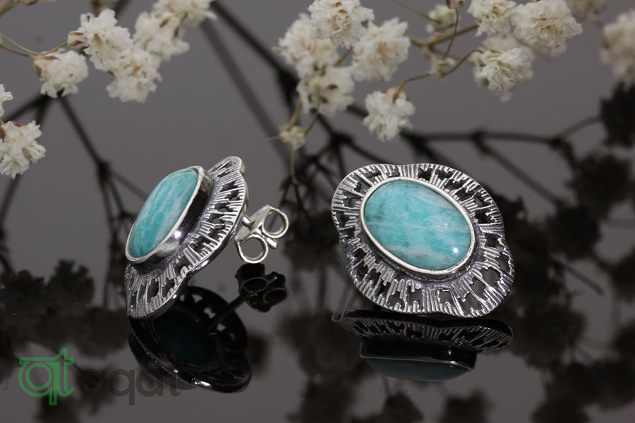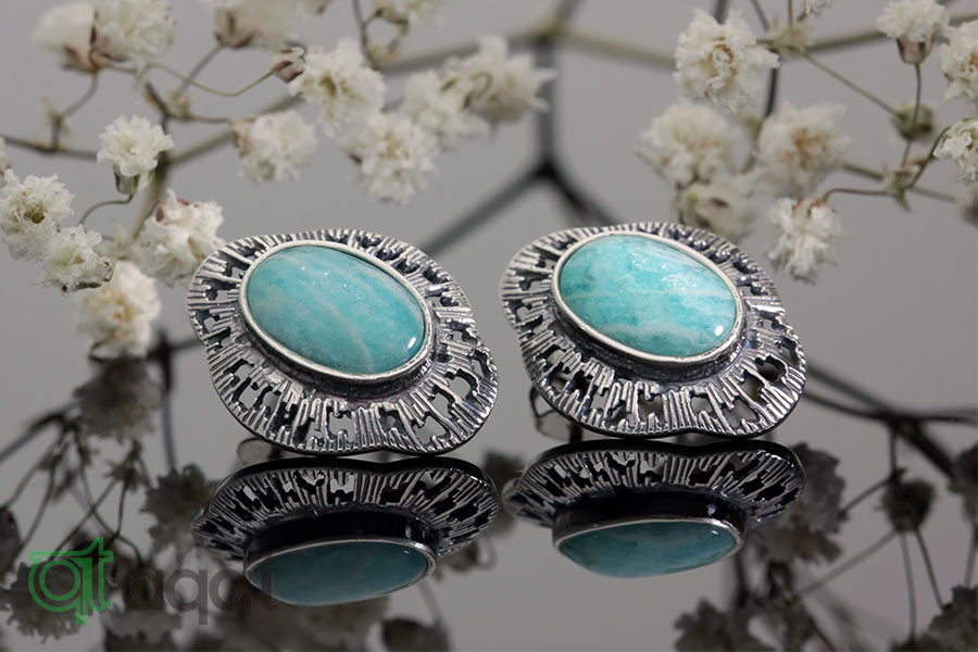 Kolczyki srebrne próby 925 z Amazonitem, oksydowane.