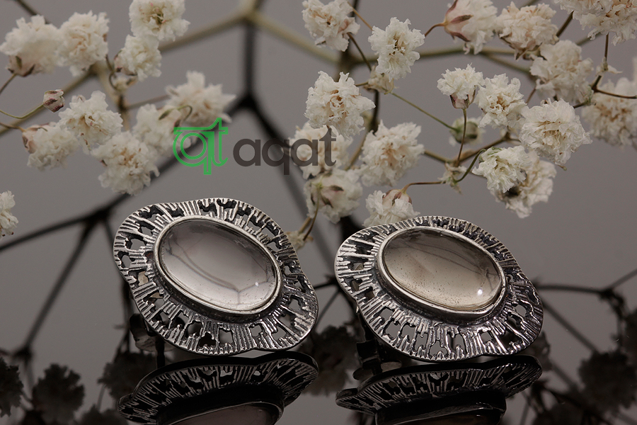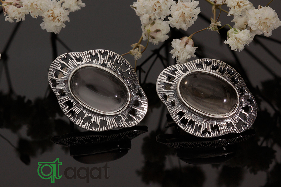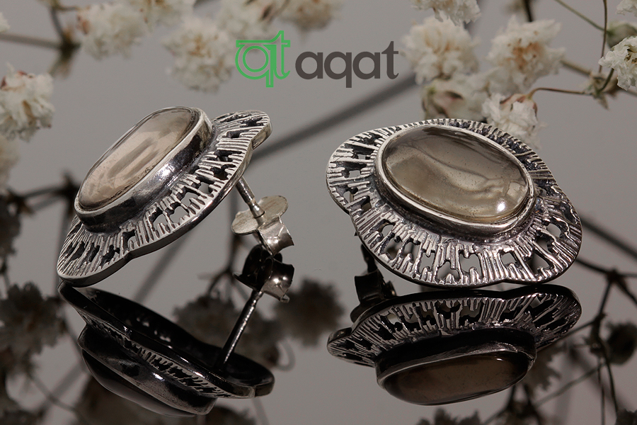 Kolczyki srebrne próby 925 z Kwarcem Dymnym, oksydowane.
