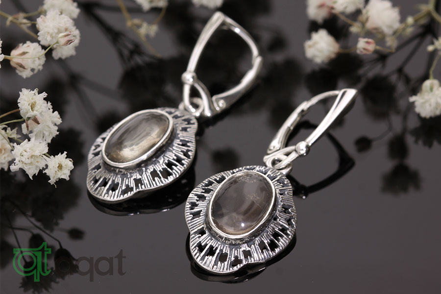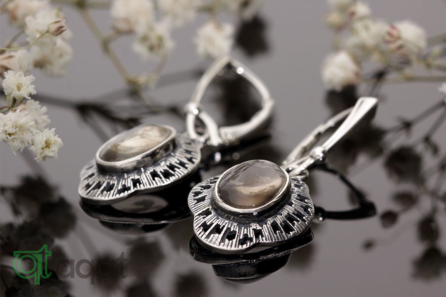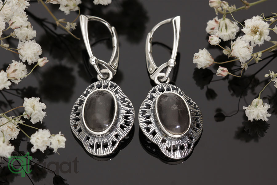 Kolczyki srebrne próby 925 z Kwarcem Dymnym, oksydowane.