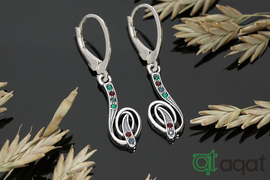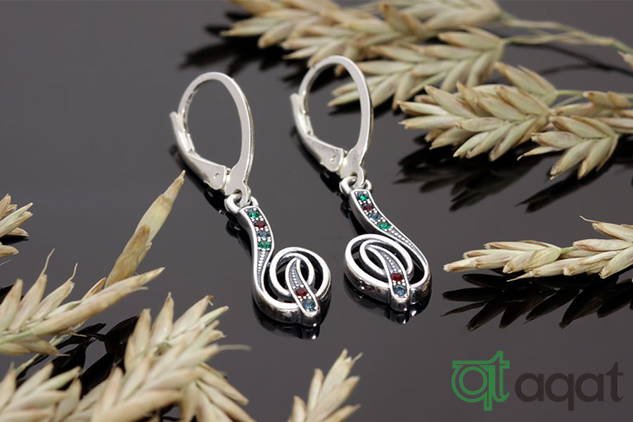 Kolczyki srebrne oksydowane, próby 925, nuta koloru i muzyki - klucz wiolinowy z cyrkoniami