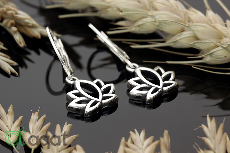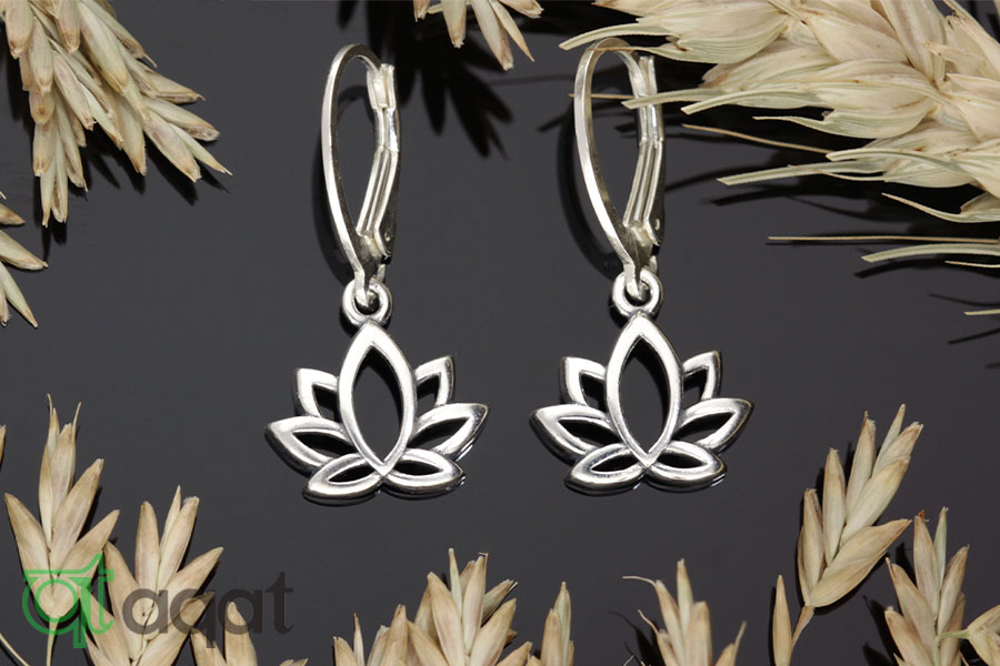 Kolczyki srebrne oksydowane, próby 925,  z motywem Lotosu jako symbol czystości i harmonii