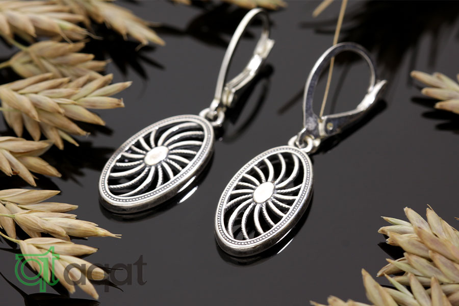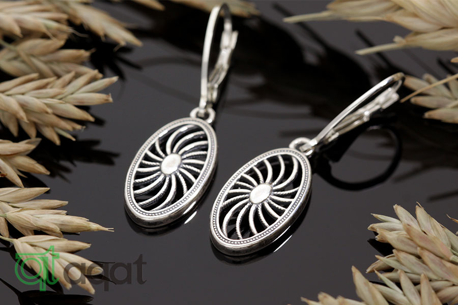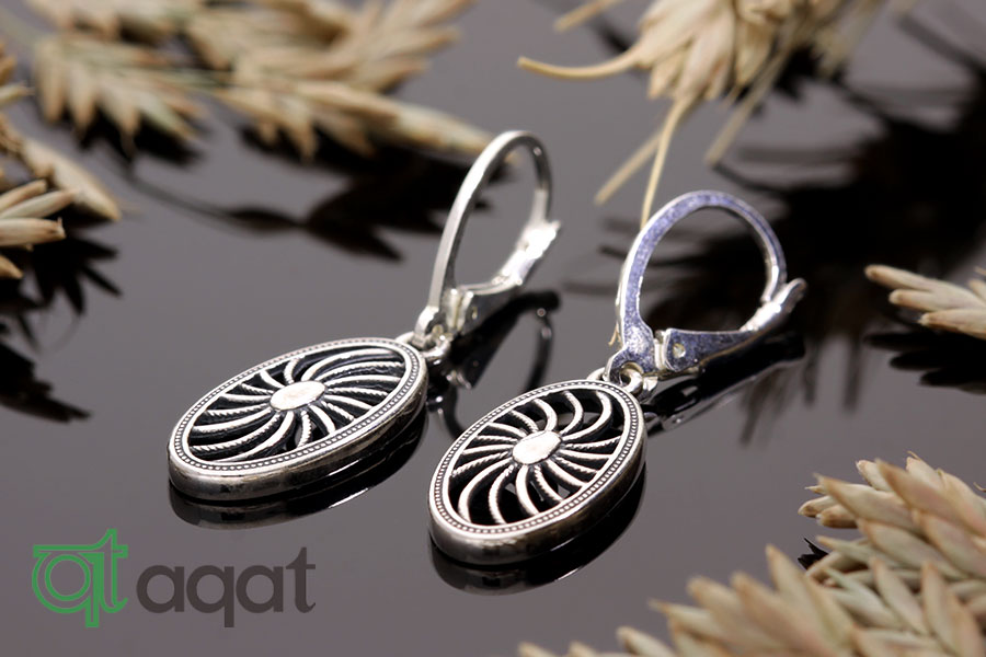 Kolczyki srebrne, oksydowane. Delikatny wzór z motywem słońca.