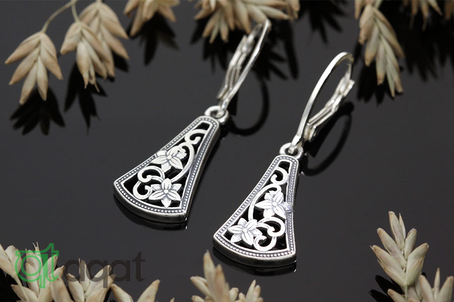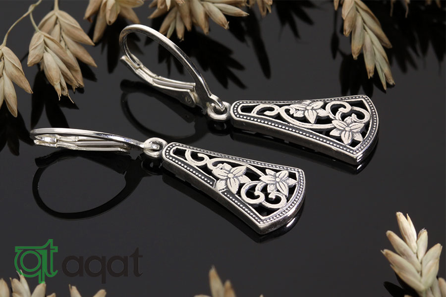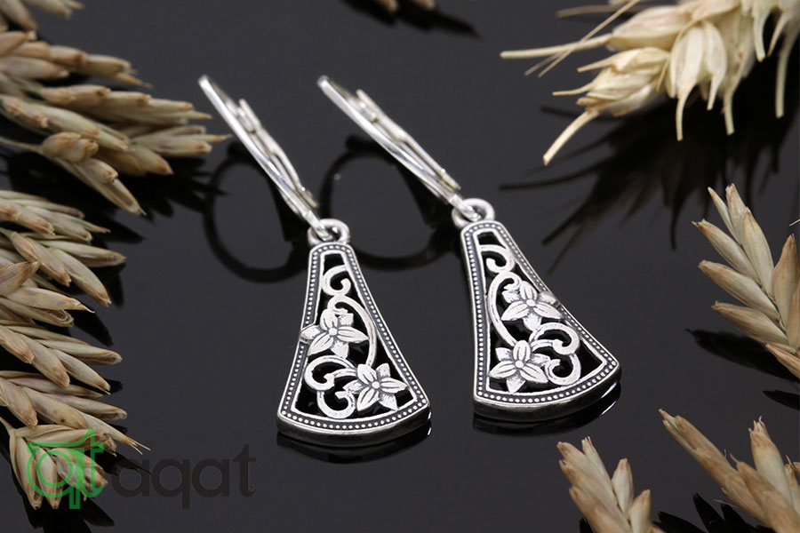 Kolczyki srebrne, oksydowane. Delikatny, kwiatowy wzór.