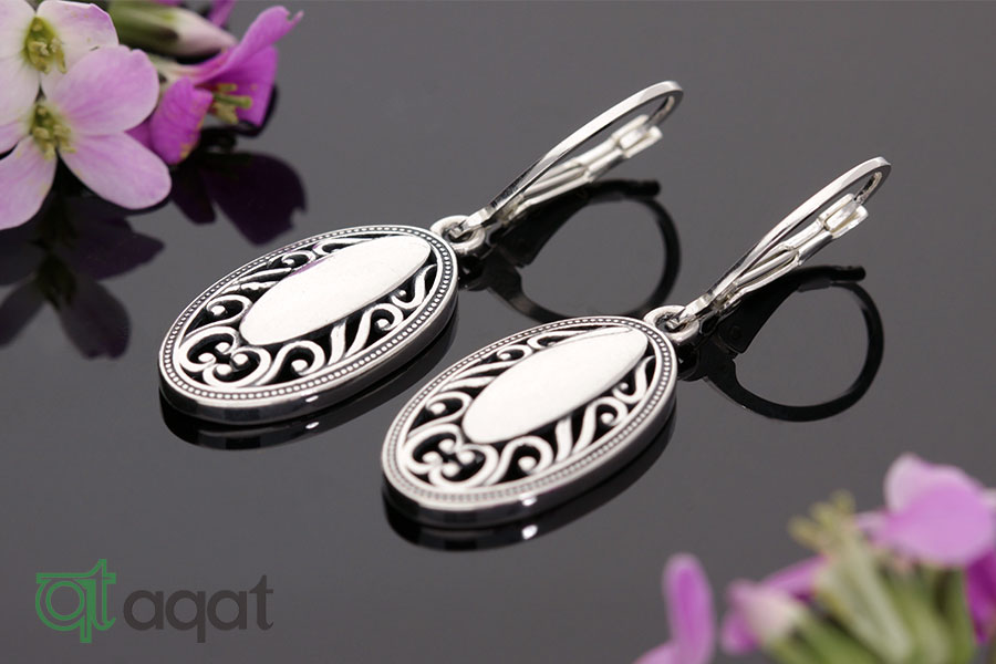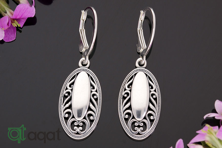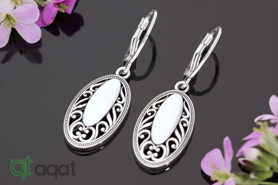 Kolczyki srebrne, oksydowane. Piękny ażurowy wzór.