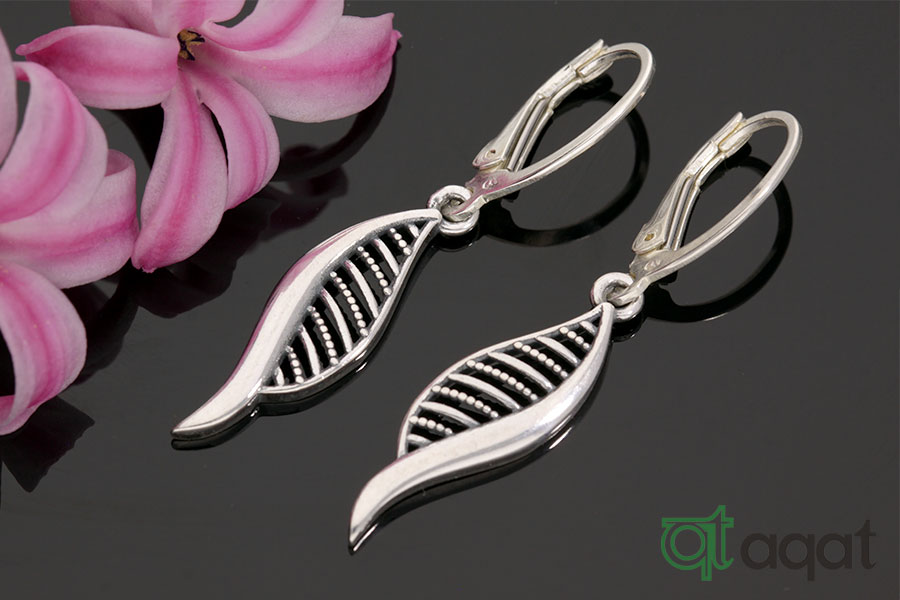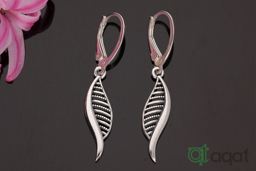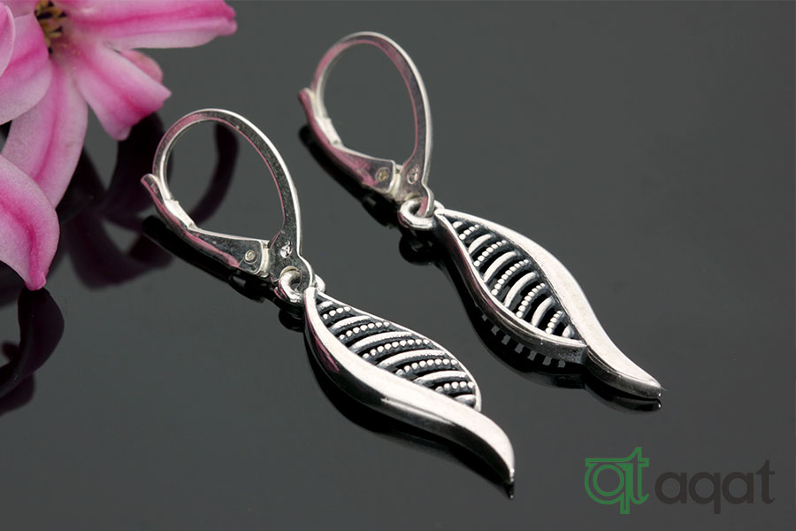 Kolczyki srebrne, oksydowane. Ażurowe, wiszące listki.