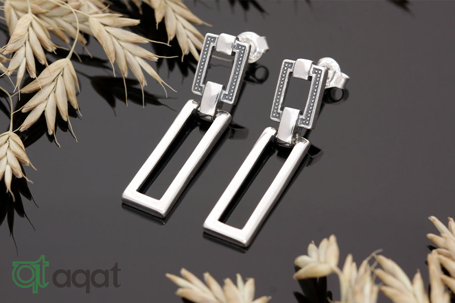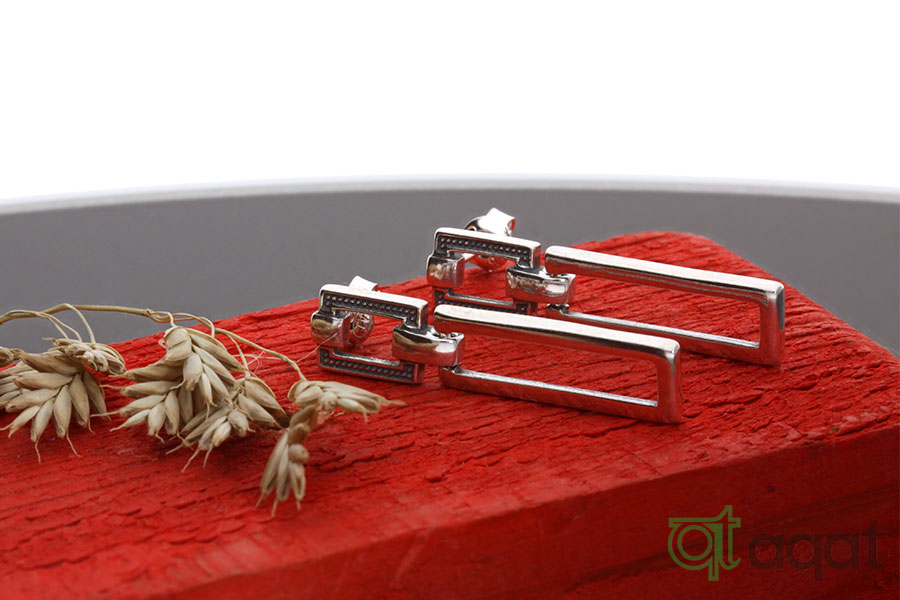 Kolczyki srebrne, oksydowane. Elegancki wzór z ażurowymi wstawkami.