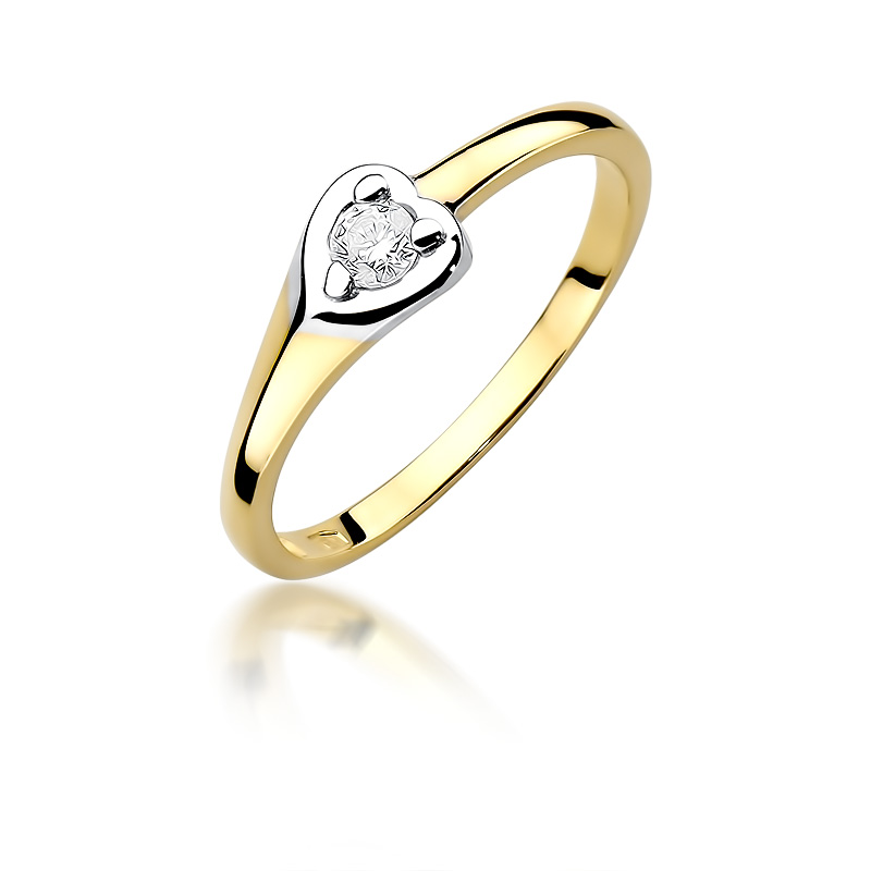 Pierścionek złoty próby 585 o masie 1,63g z diamentem 0,10 kr