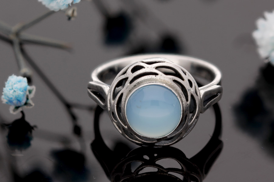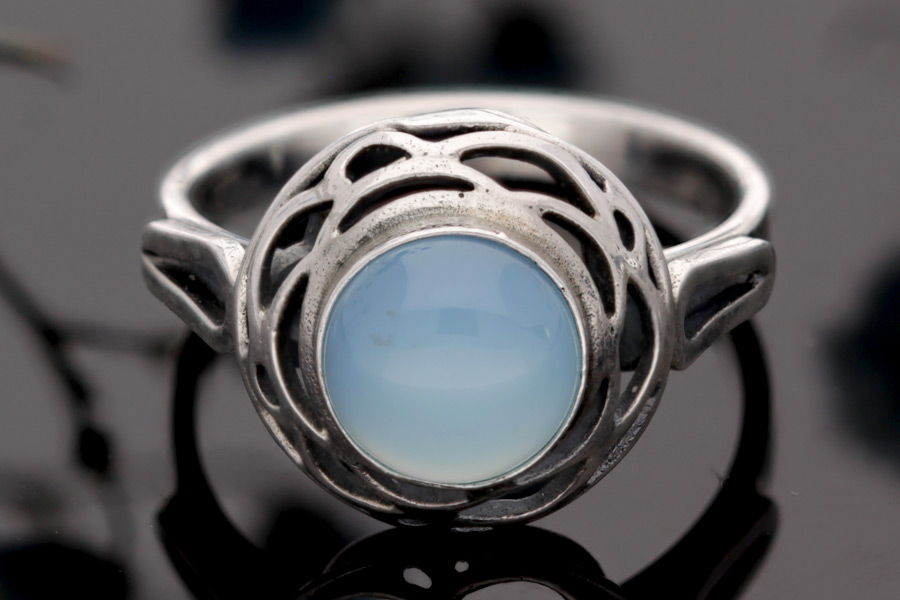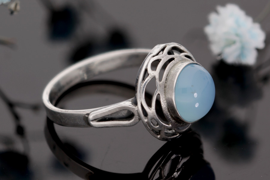 Pierścionek srebrny próby 925 z Agatem Niebieskim , oksydowany.