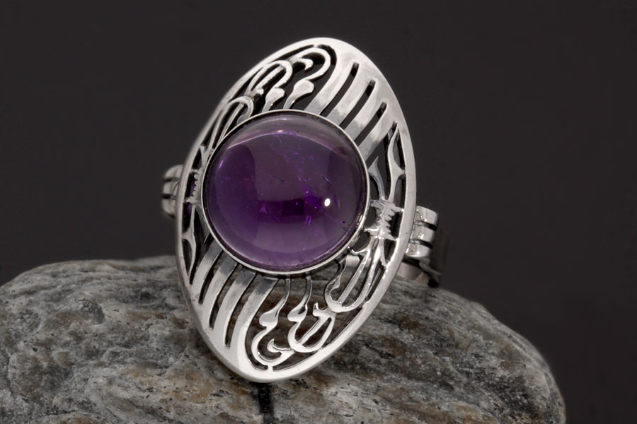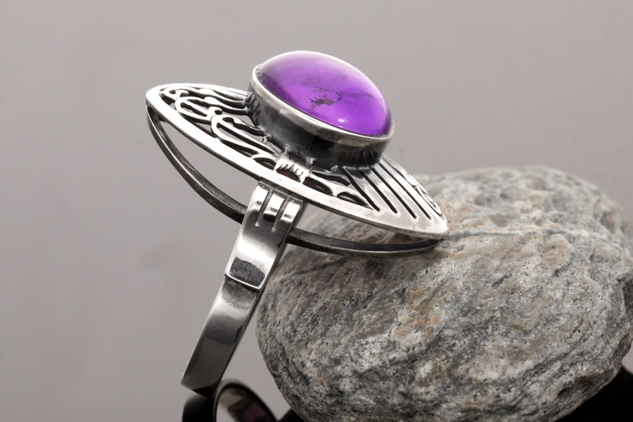 Pierścionek srebrny próby 925 z Ametystem , oksydowany.