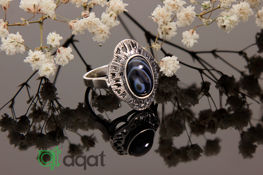 Pierścionek srebrny próby 925 z Onyksem.