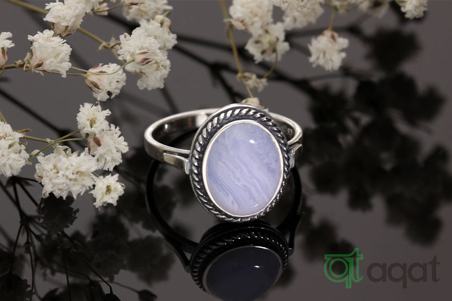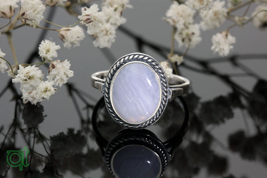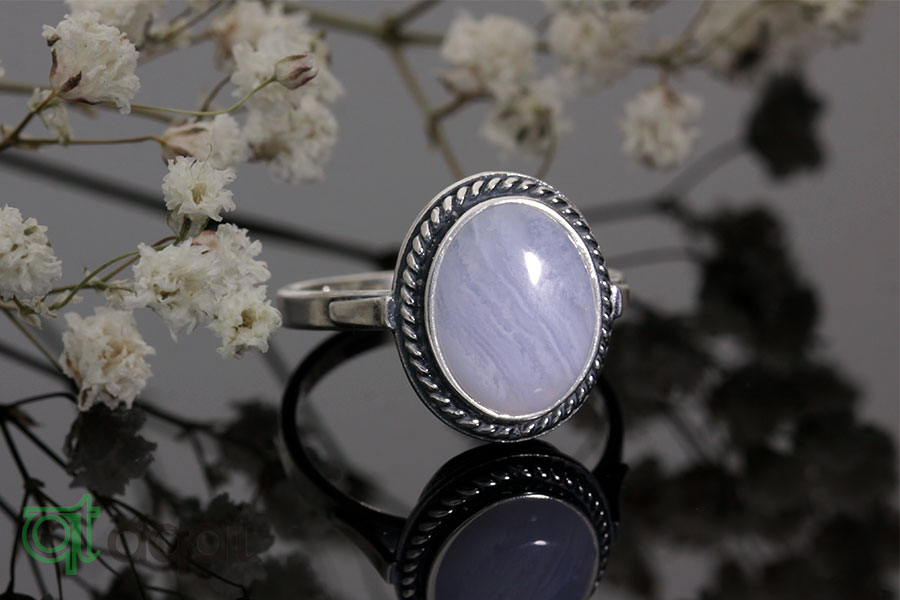 Pierścionek srebrny próby 925 z Agatem Blue Lace, oksydowany.