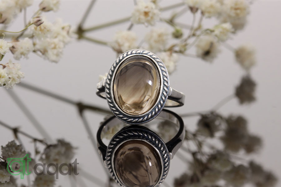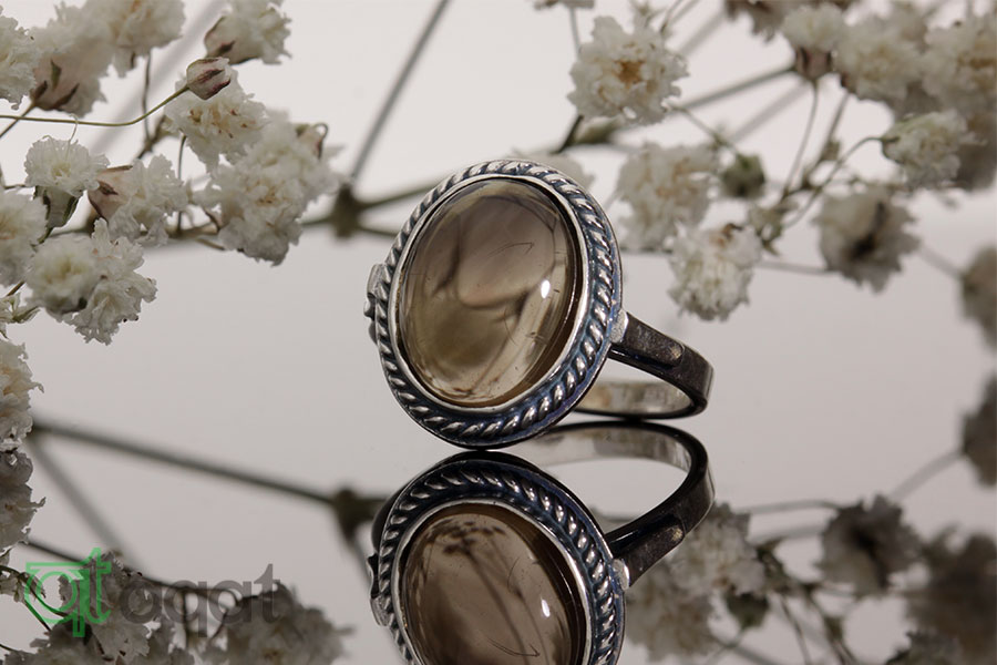 Pierścionek srebrny próby 925 z Kwarcem Dymnym, oksydowany.