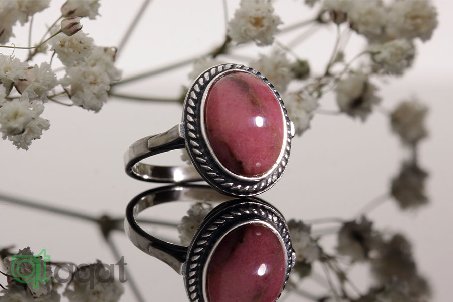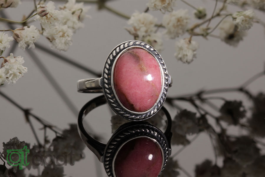 Pierścionek srebrny próby 925 z Rodonitem, oksydowany.
