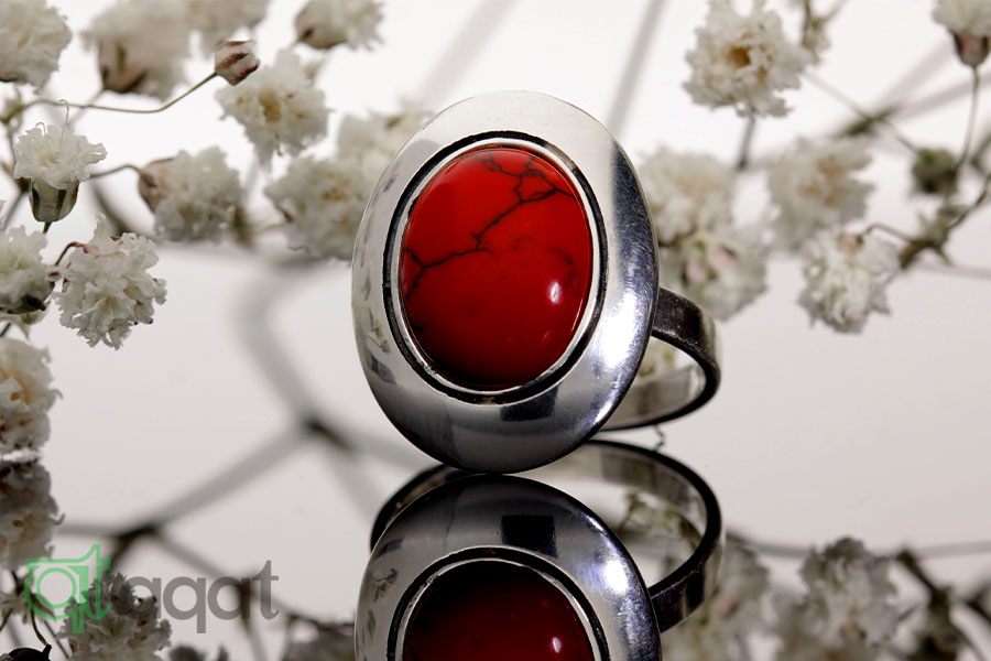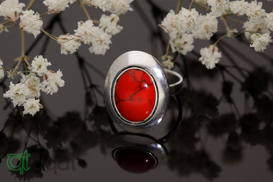 Pierścionek srebrny próby 925 z Koralem, oksydowany.