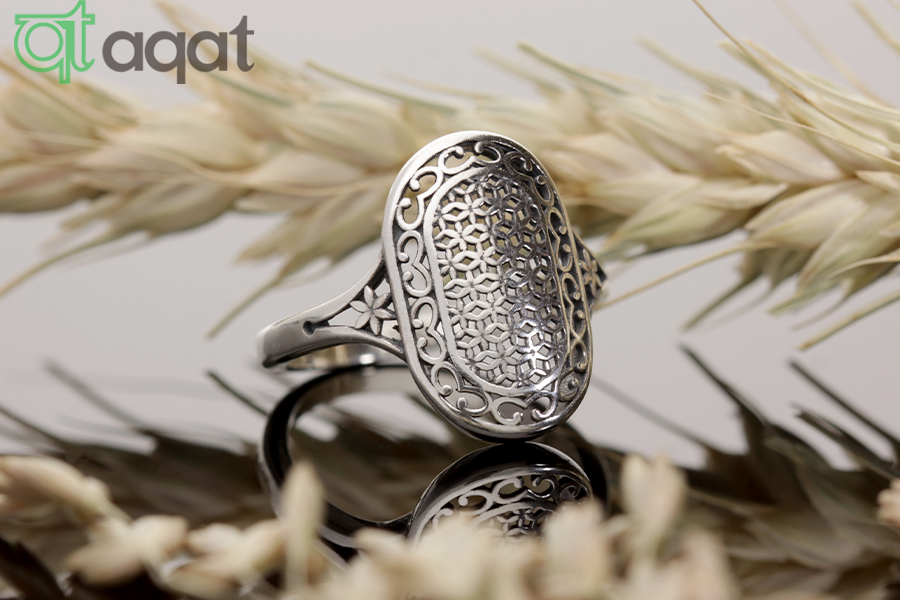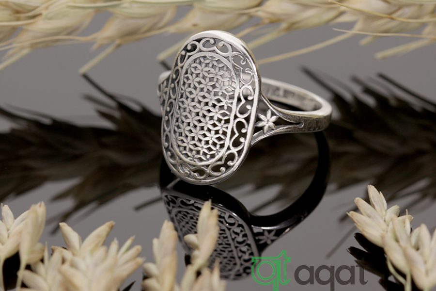 Pierścionek srebrny, oksydowany. Ażurowy wzór.