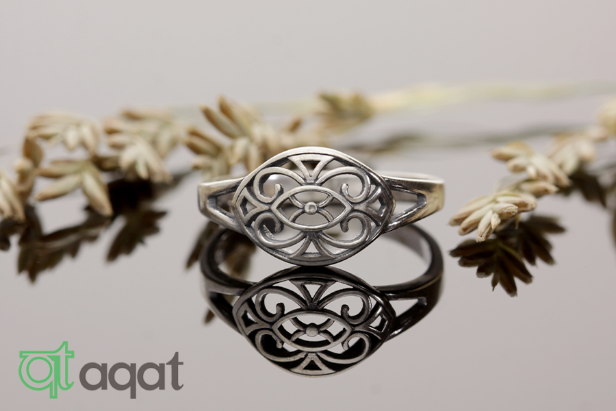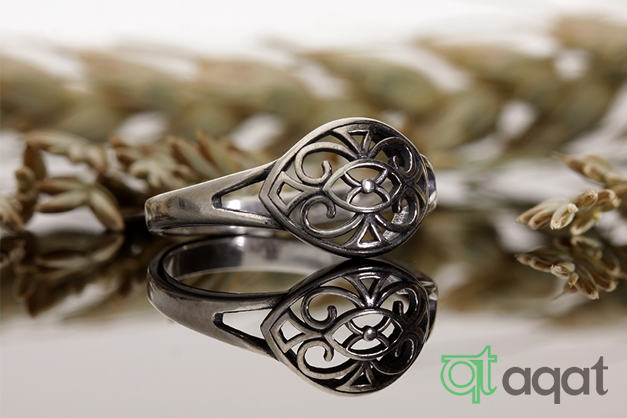 Pierścionek srebrny, oksydowany. Delikatny ażurowy wzór.