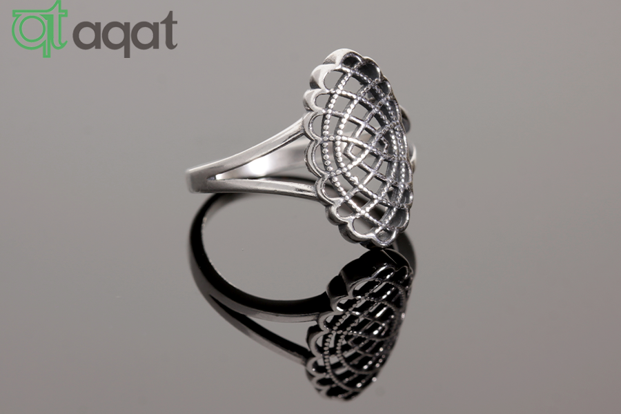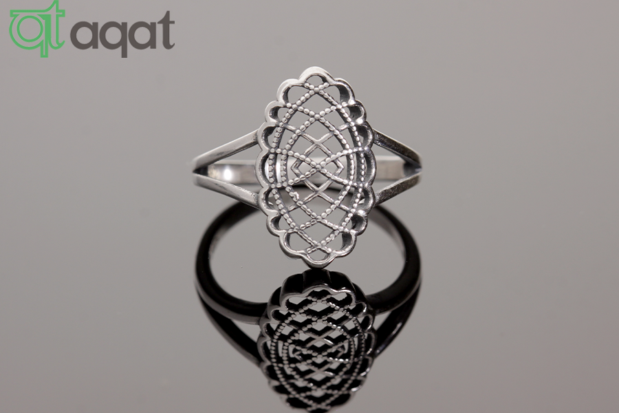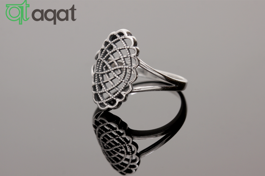 Pierścionek srebrny, oksydowany. Ażurowy wzór.