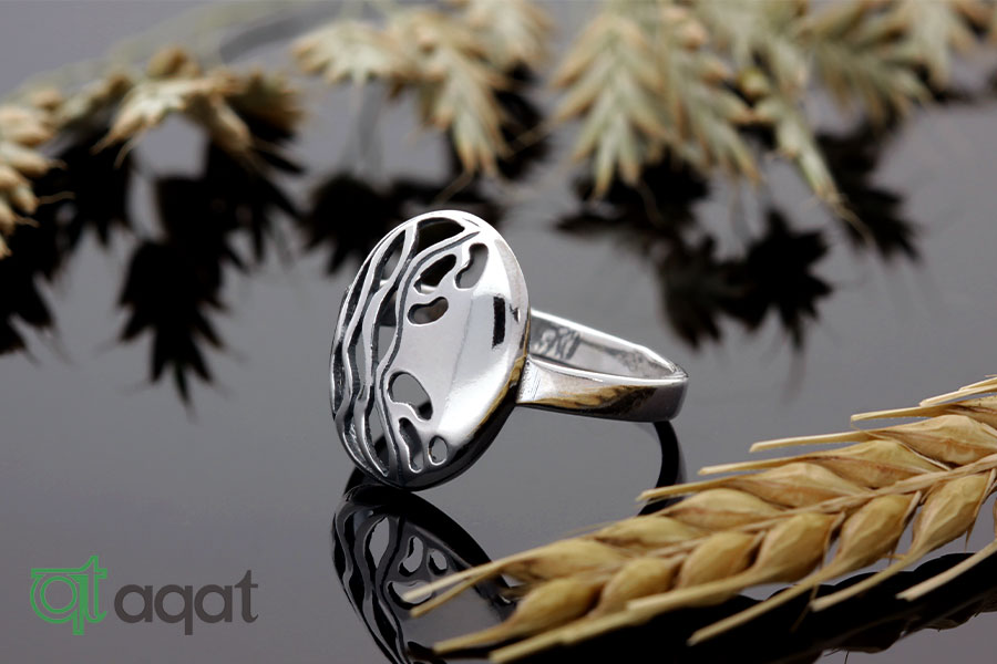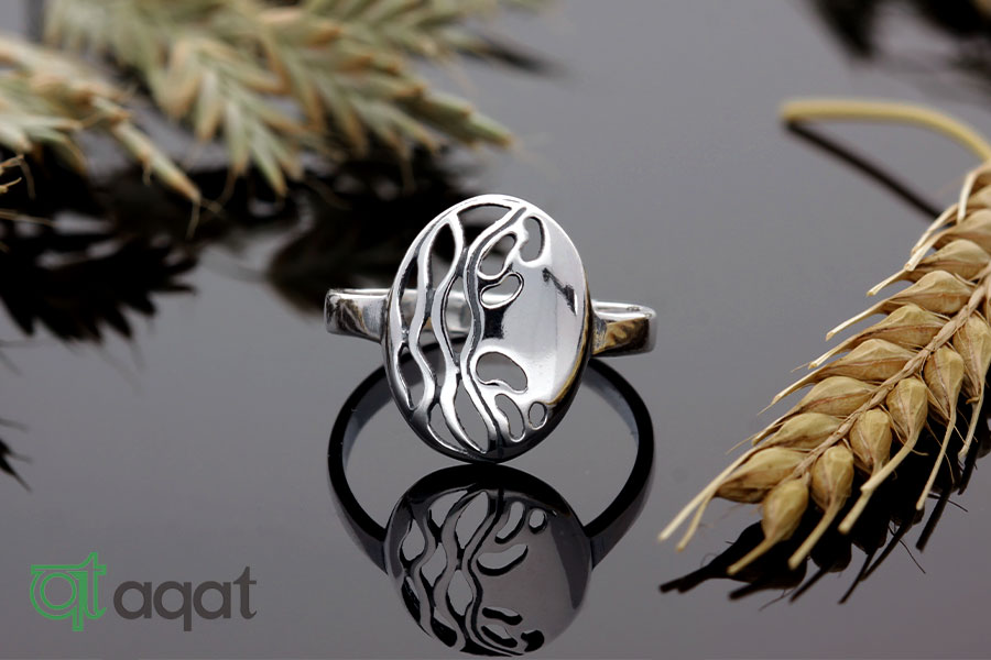 Pierścionek srebrny oksydowany, próby 925,  z motywem nieregularnych fali i lustra