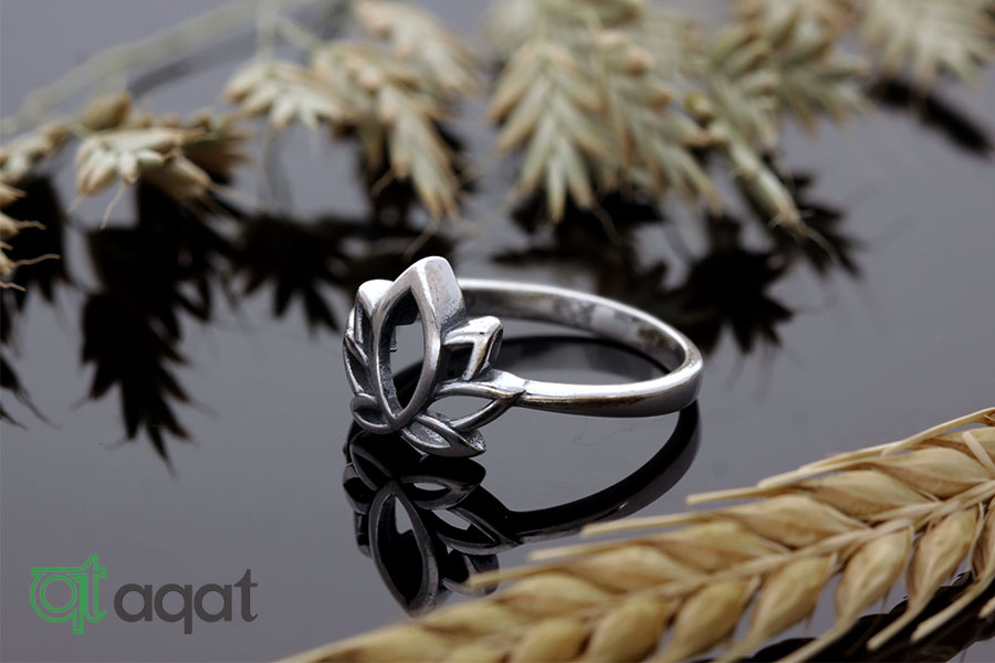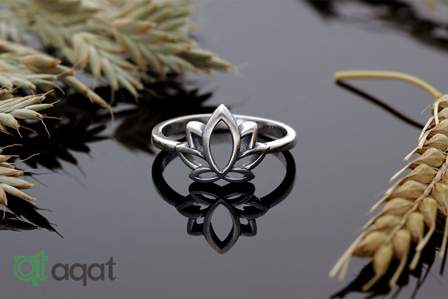 Pierścionek srebrny oksydowany, próby 925,  z motywem Lotosu jako symbol czystości i harmonii