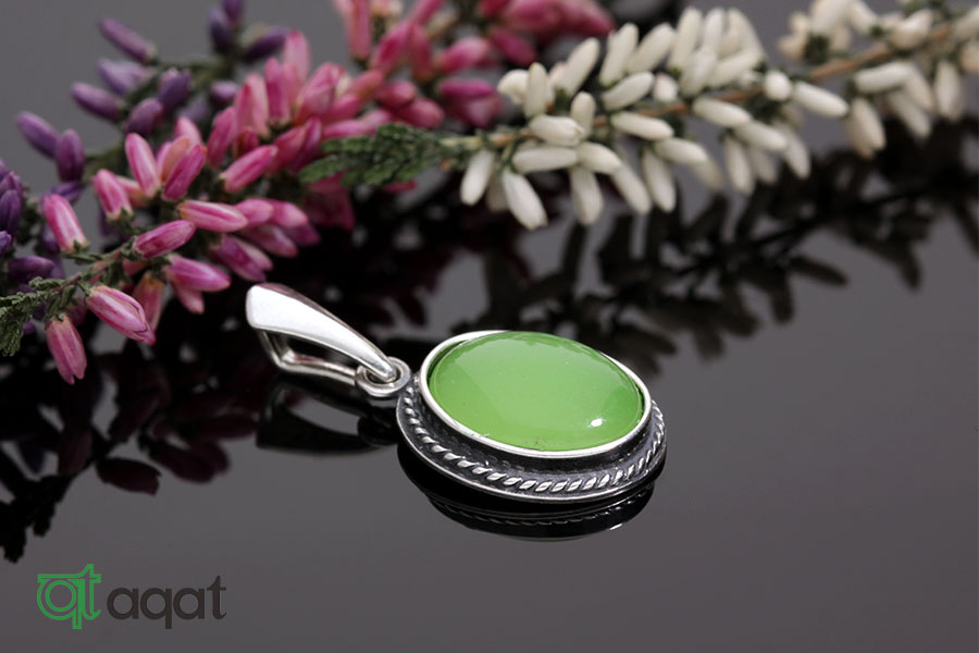 Wisiorek srebrny oksydowany z Chryzoprazem