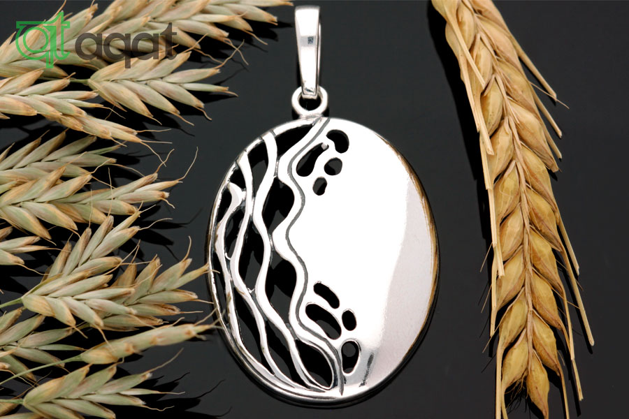 Wisiorek srebrny oksydowany z motywem nieregularnych fali i lustra