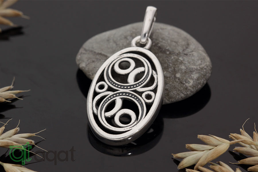 Wisiorek srebrny, oksydowany. Piękny geometryczny wzór z ażurowym detalem.