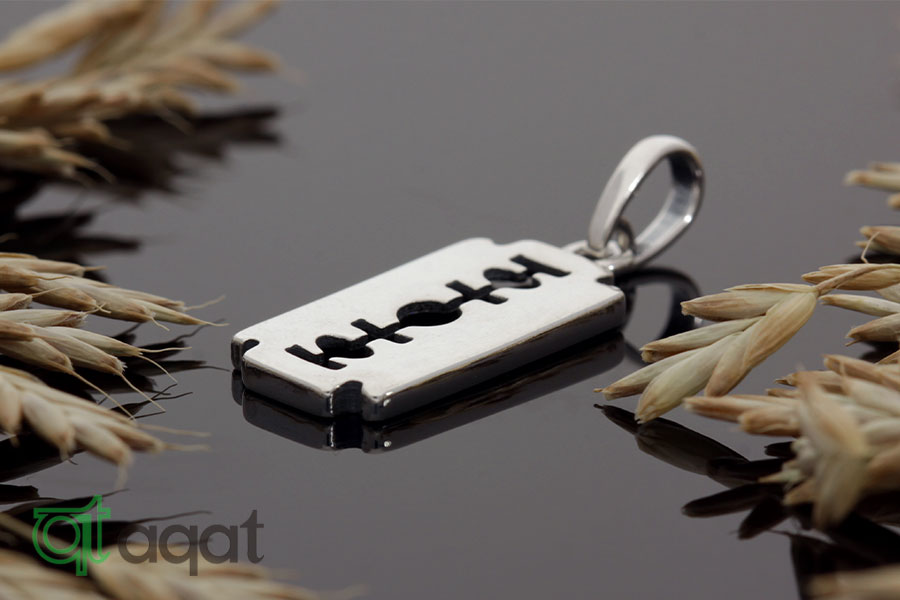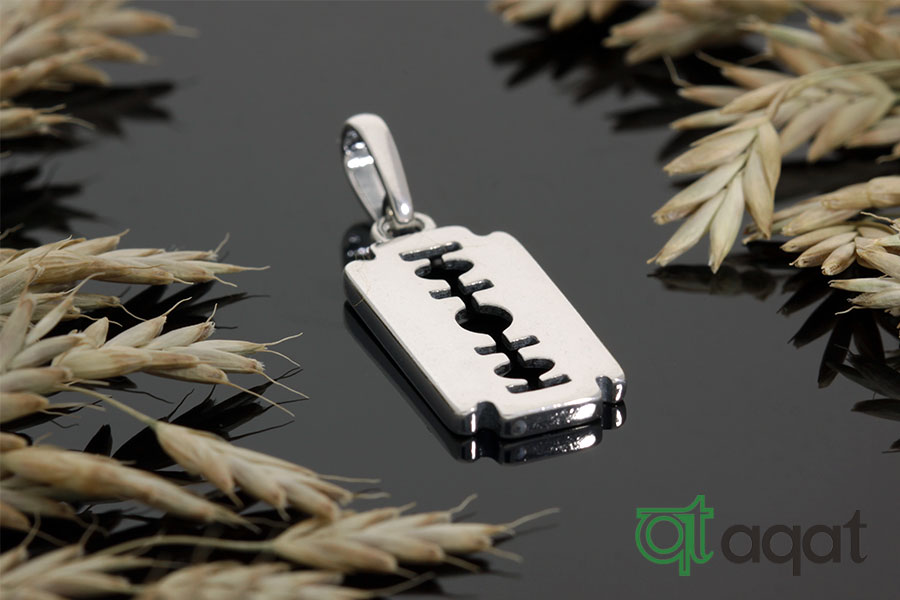 Wisiorek srebrny, oksydowany. Wisorek żyletka -  dodatek dodający ostrości do codziennej stylizacji.