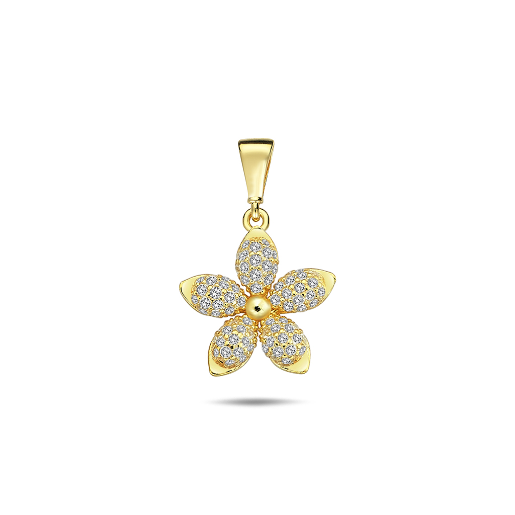 Wisior złoty, próba 585. Subtelność i blask w jednym. Płatki kwiatu zostały gęsto wysadzane cyrkoniami, które przepięknie mienią się przy każdym ruchu.