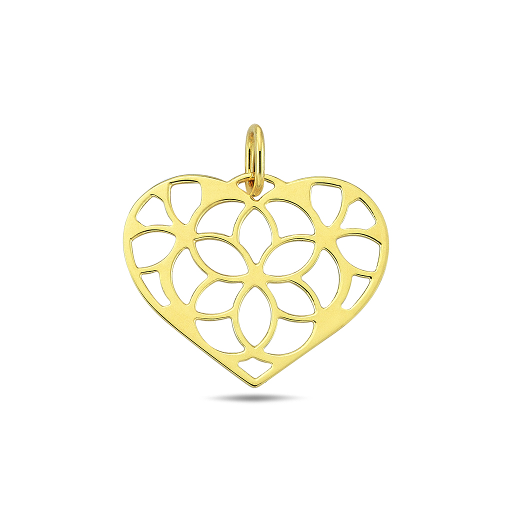 Wisior złoty, próby 585. Zawieszka w kształcie serca to połączenie klasycznej symboliki z nowoczesnym designem. Serce wypełnia geometryczny motyw.