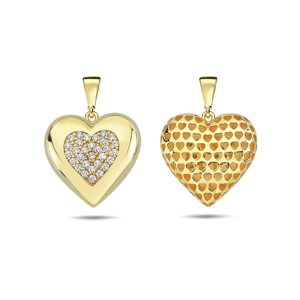 Wisior złoty, próba 585. Klasyczne, gładkie złoto oraz blask lśniących kamieni zamknięte w kształcie serca.