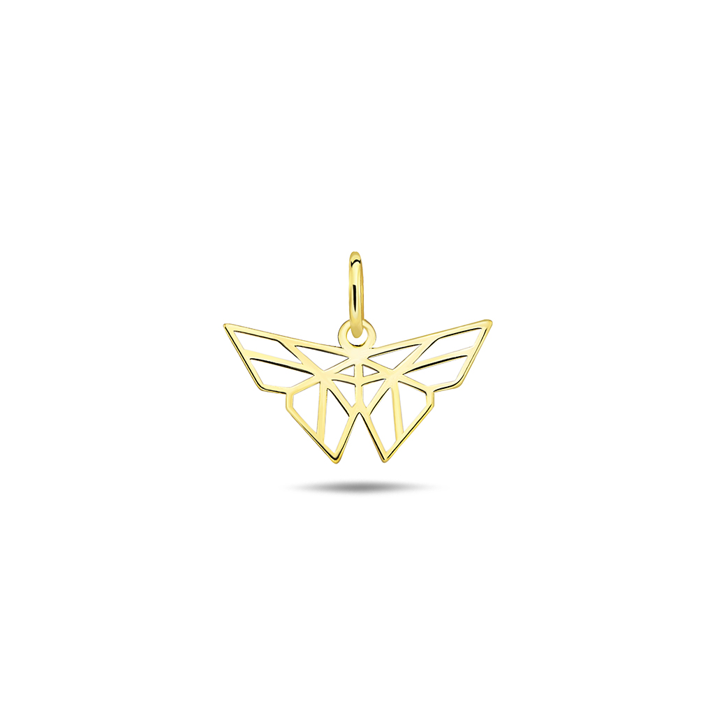 Wisior złoty, próba 585. Geometryczny motyl z ażurową konstrukcją, która nadaję niesamowitej lekkości i finezji.