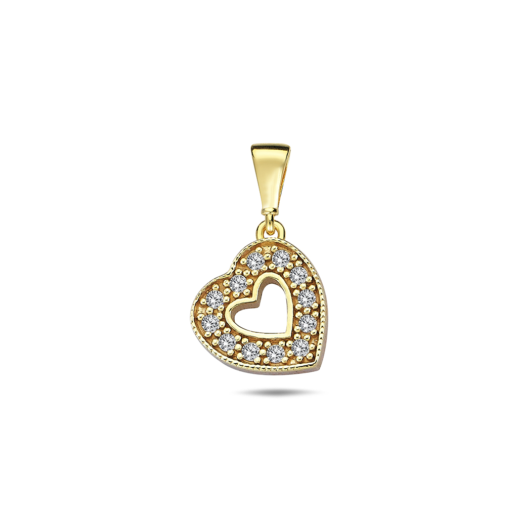 Wisior złoto, próba 585. Zawieszka w kształcie serca, której rama została gęsto wysadzona lśniącymi cyrkoniami. Idealnie balansuje między romantyzmem a nowoczesnym szykiem.