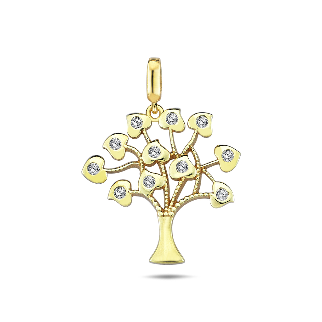 Wisior złoto, próba 585. Niezwykle oryginalna interpretacja motywu drzewa życia. W tym modelu liście zostały zastąpione cyrkoniami co nadaje biżuterii radosnego i luksusowego charakteru.