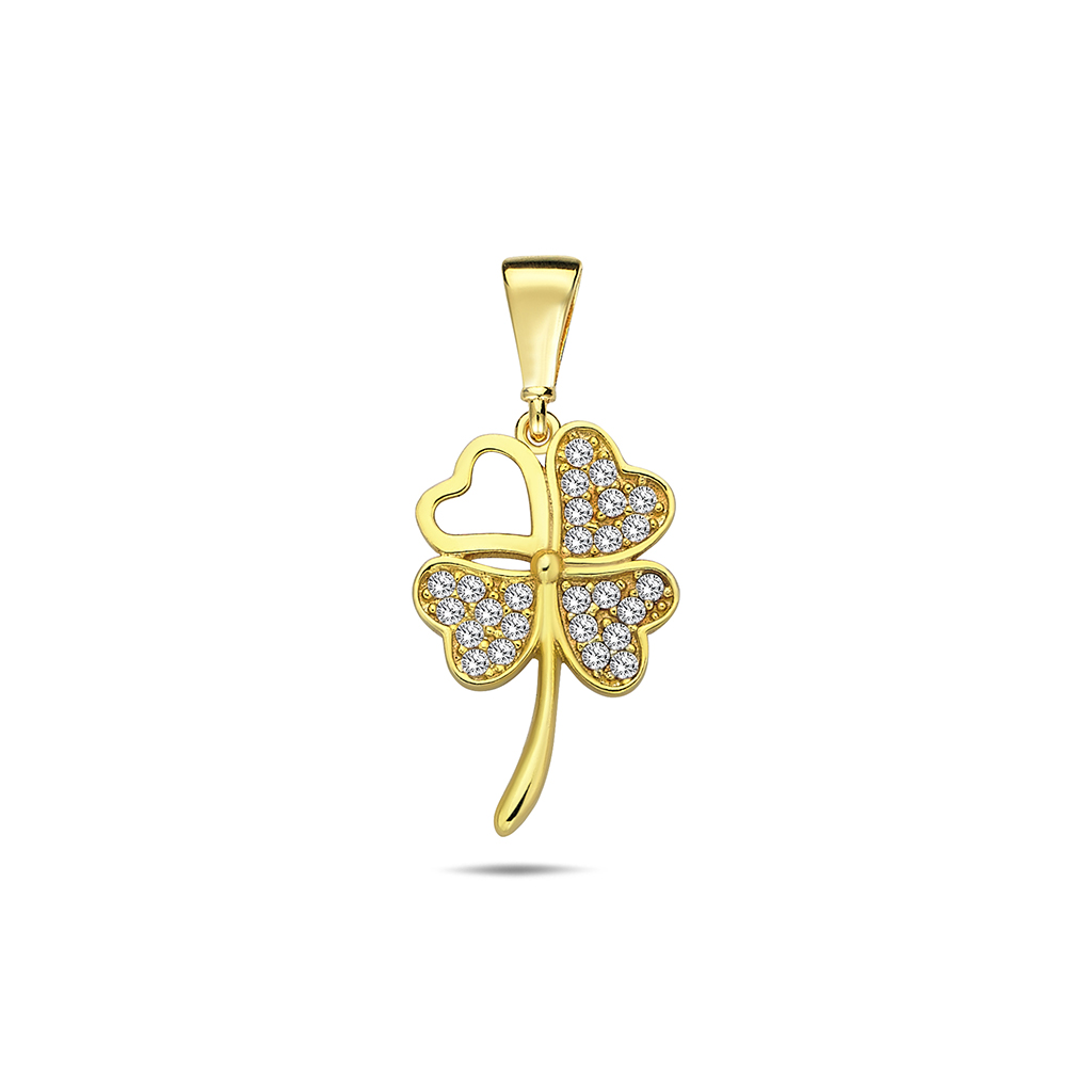 Wisior złoty, próby 585. Ta elegancka zawieszka w kształcie czterolistnej koniczyny to idealne połączenie złota z nowoczesnym, biżuteryjnym zdobieniem.
