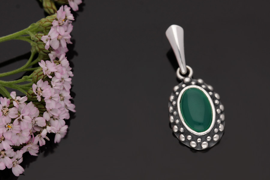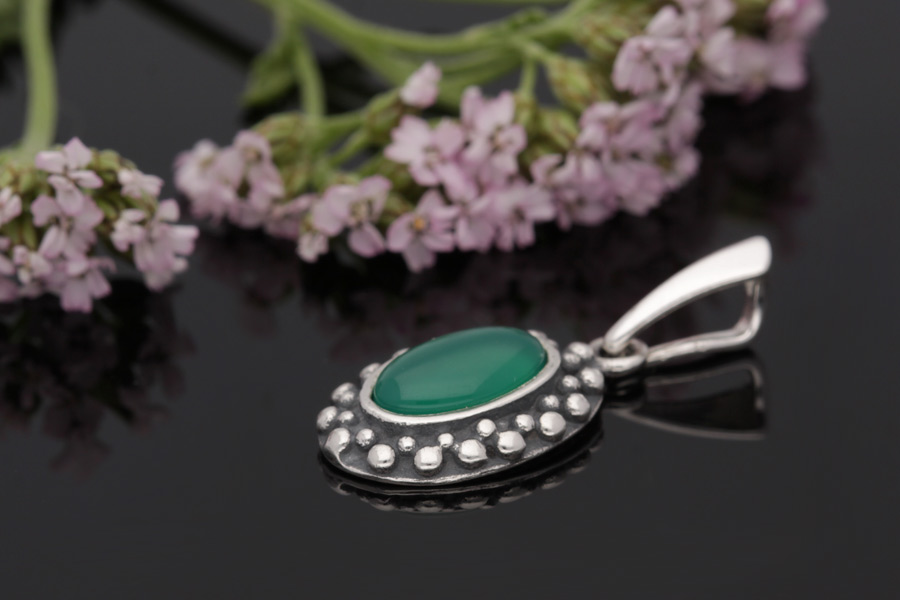 Wisiorek srebrny oksydowany z Agatem Zielonym